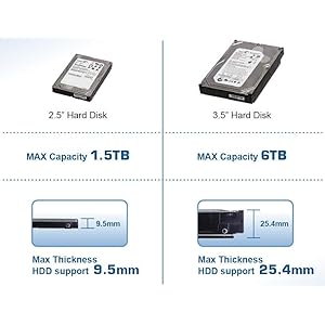 - Maximum Capacity (per Bay): 1.5TB for 2.5" / 6TB for 3.5"