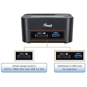 Rosewill USB 3.0 2.5"/3.5" Hard Drive HDD Dock SATA I/II Interface with USB 3.0 SD Card Reader and 2 Port USB Hub